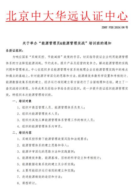 关于举办“能源管理员&能源管理实战”培训班的通知